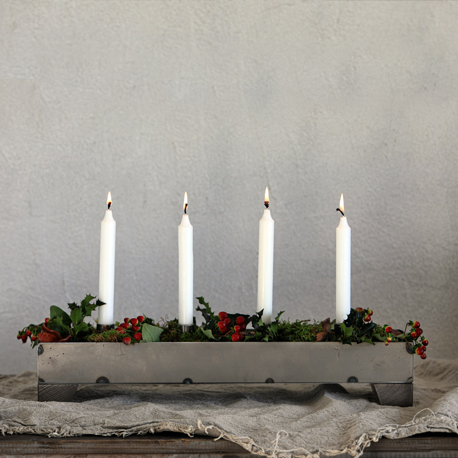 Vacker smides ljusstake tillverkad i rå och obehandlad metall. Rustik och rejäl, dekorera efter säsong. Till jul med mossa och grankvistar.