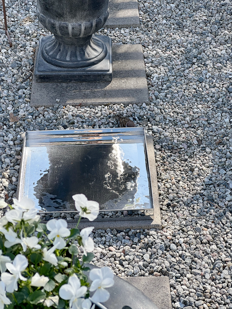 Vacker och i en tidlöst design, vattenblänk i silver, både dekorativt och funktionellt. Placera den mitt i en plantering eller direkt på gruset, eller gräv ner så att vattnet går i jämn linje med stenläggningen.